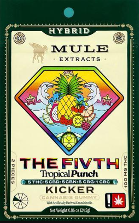 100mg 2-Piece Tropical Punch "The FIVTH" 5:5:5:5:1 THC CBD CBN CBG CBC Kicker (Hybrid)