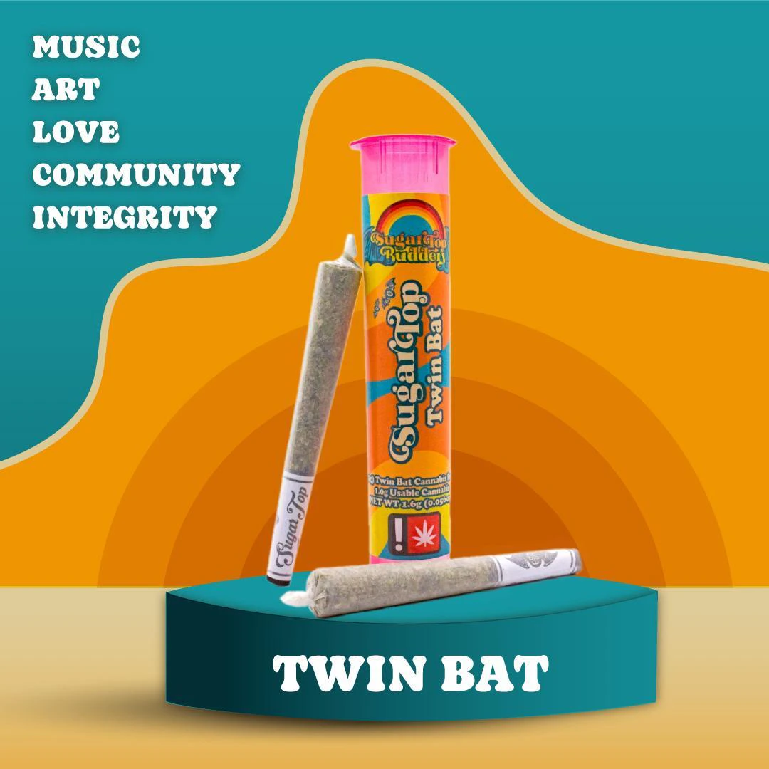 SugarTop Buddery "Bats" are rolled with love and attention to the details. We have perfected our grind for an even burn everytime, and make sure there is never a weak or bent crutch. Our joints are packed evenly from crutch to tip and we stand behind each and every one! Our signature 2 pack of (0.5g) Pre-Rolls. With one for now and one for later, never worry about lighting up a half smoked joint again! (Fun fact: our founder Anna is a Twin! Double the bats, double the fun